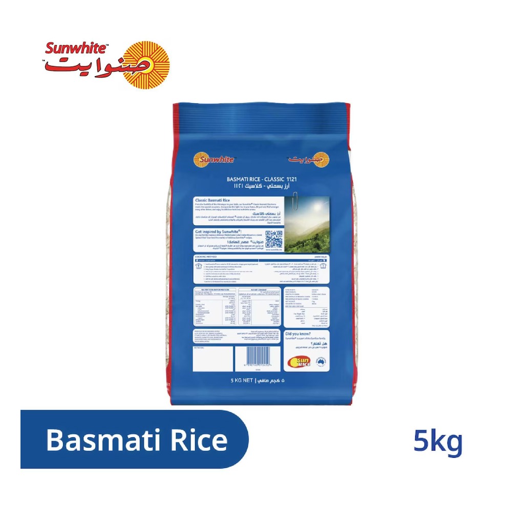 Sunwhite Basmati Rice 5kg | Long Grain Aroma for Biryani & Pulao | Best Price Dubai UAE